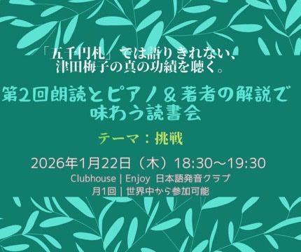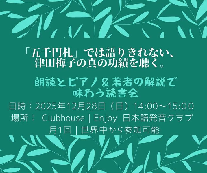 - 9月読書会『小説 津田梅子 ハドソン河の約束 米国女子留学生による近代女子教育への挑戦』【リアル+オンライン】オブザーブ参加も可能(第210回) 9月12日(金)19:00ー21:00
