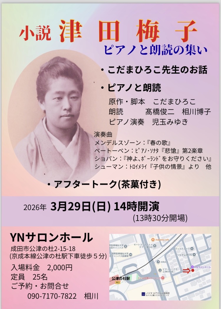 - 7/27(日)宇目女性機構 「津田梅子講演会・ピアノと朗読の集い」